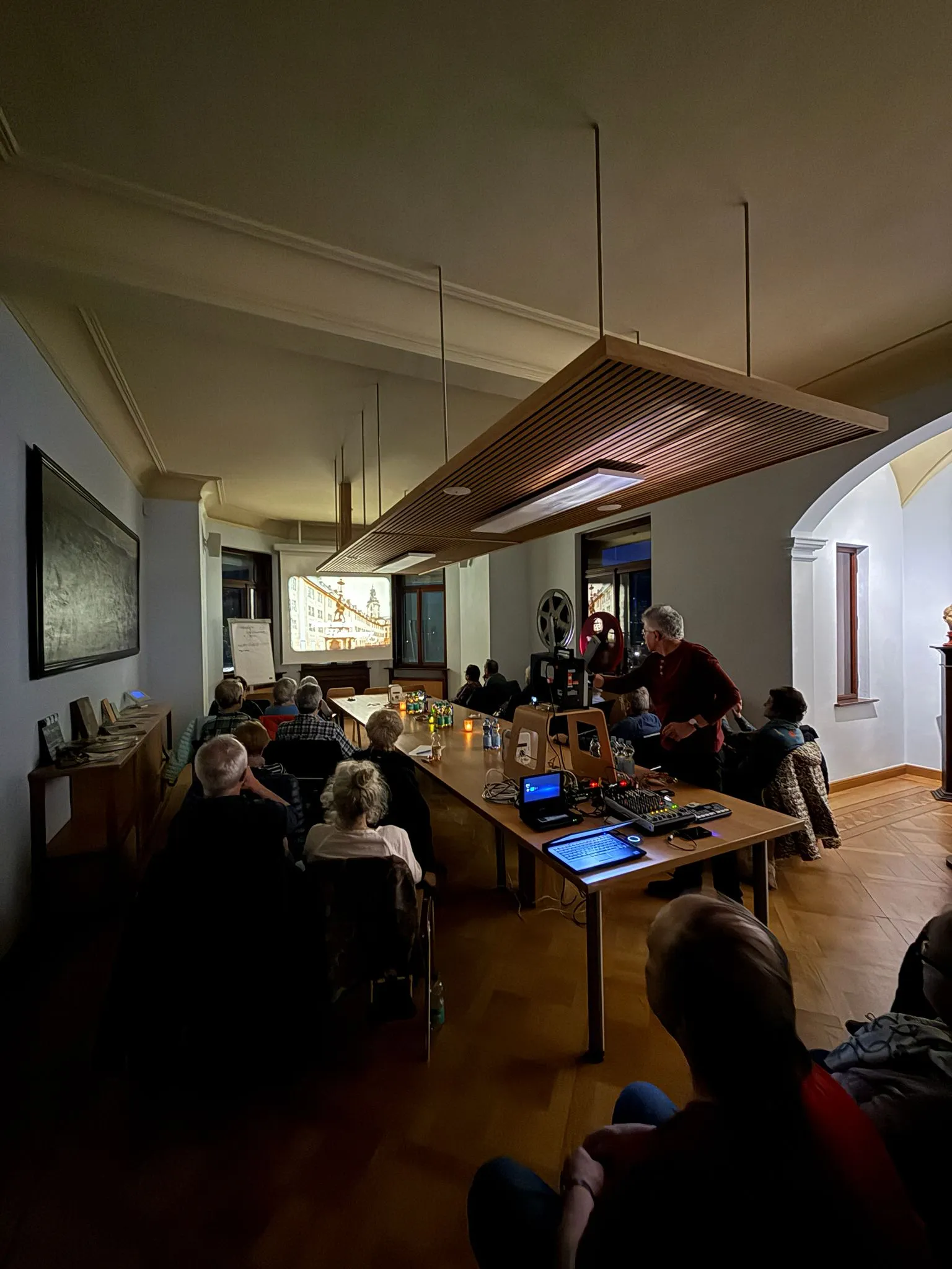 Am 12.11.2025 haben wir zum Filmabend in die Schott Villa eingeladen. Jens Blumenstein vom Schottfilmclub nahm uns mit auf eine Zeitreise von 1930ern, 1950ern - 1970ern zu Sportfesten bei Schott und Zeiss. Von der Filmrolle wurde uns ein Film aus den 1980ern vom Kunstfestival in Rudolstadt gezeigt. Es war ein interessanter Abend für den wir uns bei Jens bedanken möchten.